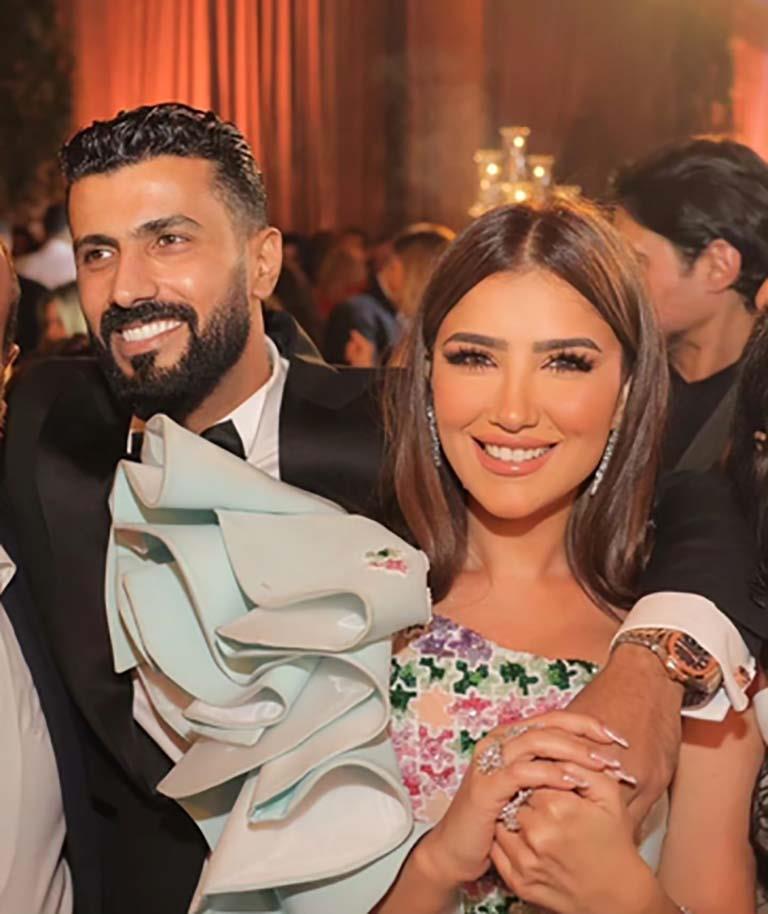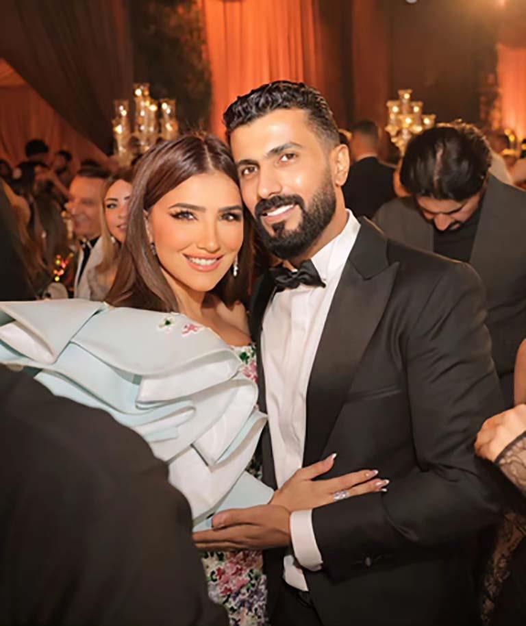خطفت الفنانة مي عمر وزوجها محمد سامي الأنظار بإطلالتها في حفل زفاف الفنانة ريم سامي.