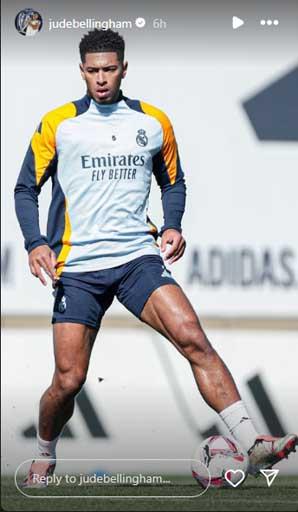 وقام جود بيلينجهام لاعب المنتخب الإنجليزي ونادي ريال مدريد الإسباني، بنشر صورة له خلال تواجده في المران الجماعي للفريق الملكي.