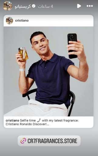 ونشر النجم البرتغالي كريستيانو رونالدو عبر حسابه الرسمي، على موقع تبادل الصور والفيديوهات "إنستجرام"، صورة له خلال قيامه بالإعلان عن أحد منتجات البرفان.