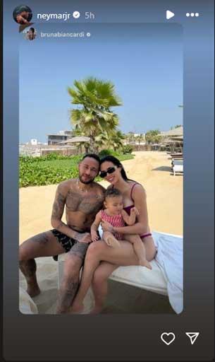 كما نشر النجم البرازيلي نيمار، عبر حسابه الرسمي على موقع تبادل الصور والفيديوهات "إنستجرام"، صورة له رفقة زوجته.