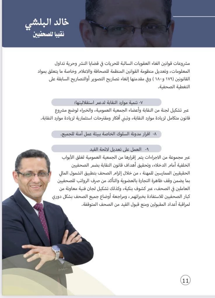 - ولقد قدمت النقابة حزمة تعديلات تشريعية على قانوني 179 و180 لسنة 2018 ركزت على النصوص القانونية بالمشروع التي كانت سببا في حصار المهنة وفي مقدمتها المادة 12 من القانون 180 والتي الغت الكارنيه لصالح تصاريح أمنية تصدر للتغطية أو التصوير.