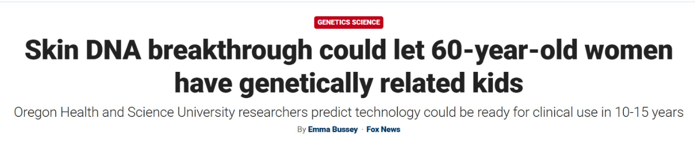 ووفقا لموقع "Fox news"، يشير هذا الاكتشاف إلى أنه من الناحية النظرية، قد تتمكن النساء في الستينيات والسبعينيات من العمر من إنجاب أطفال مرتبطين وراثيًا في يوم من الأيام، ورغم أن هذه التقنية التجريبية مازالت في بداياتها، لكنها قد تفتح آفاقا جديدة للنساء الأكبر سنا اللاتي نفدت بويضاتهن.