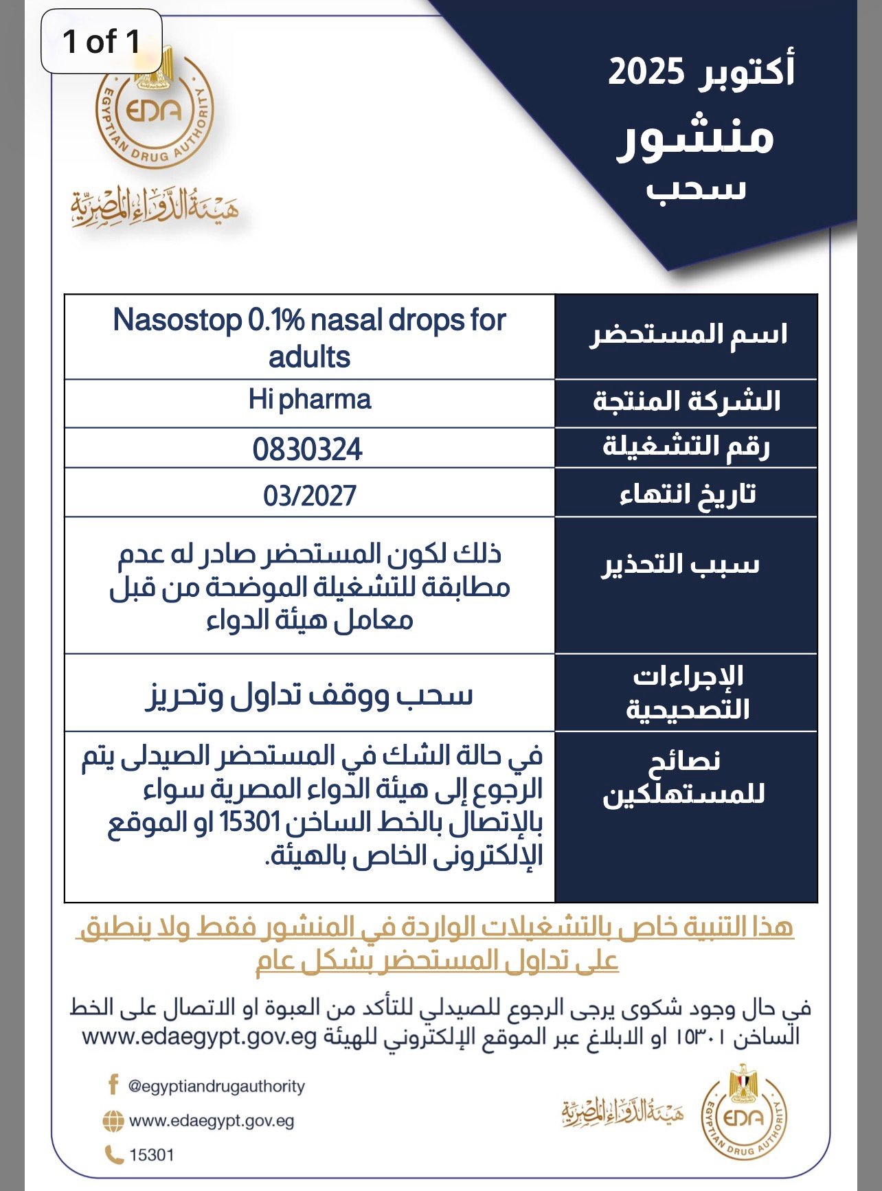 المستحضر الثانى :- Nasostop 0.1% nasal drops for adults