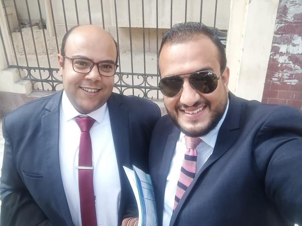 محامي الإسكندرية أمام المحكمة مع أحد زملائه بعد انتهاء اخر جلساته