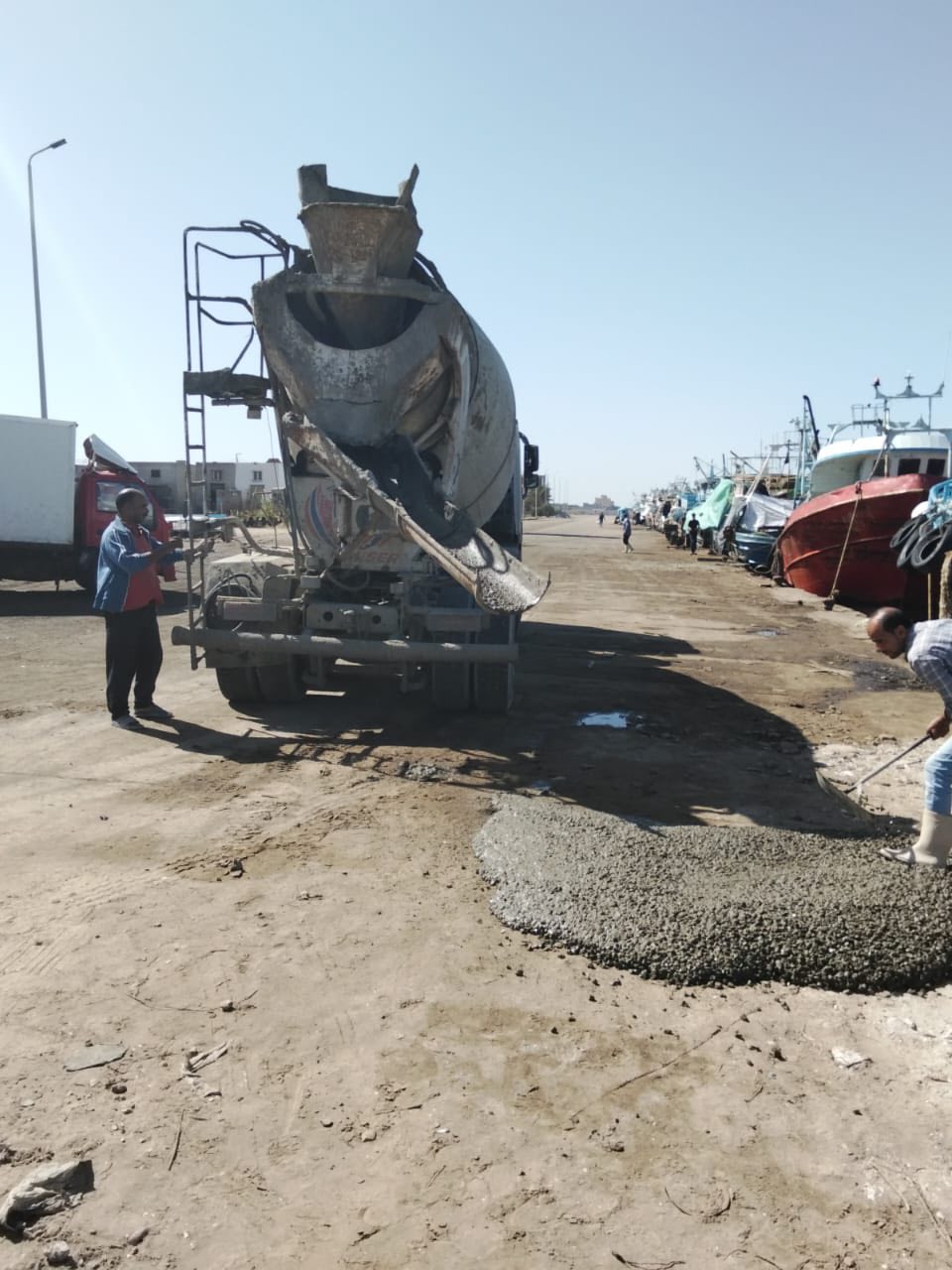 جانب من أعمال ترميم أرصقة ميناء البرلس البحري