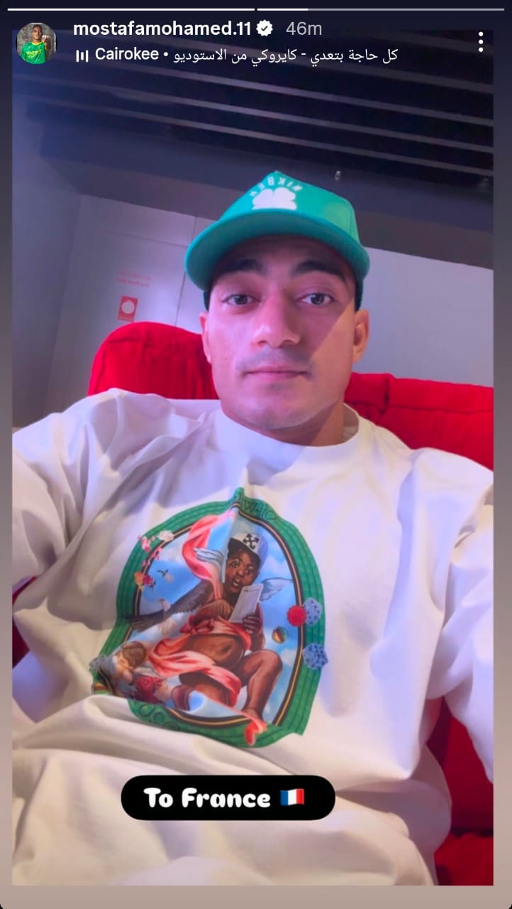 ونشر مصطفي محمد لاعب نانت الفرنسي ومنتخب مصر صورة له عبر حسابه الشخصي "انستجرام" أثناء عودته إلى فرنسا، مصحوبة بأغنية "كل حاجة بتعدي" لفرقة كايروكي".