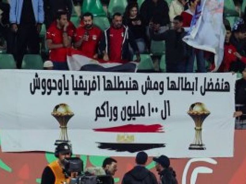 رفعت الجماهير المصرية والعربية الحاضرة فى ملعب أدرار الذى يستضيف مباراة مصر وكوت ديفوار بعد قليل فى ربع نهائى أمم أفريقيا، لافتة لتشجيع اللاعبين قبل المباراة مكتوب عليها: "هنفضل أبطالها ومش هنبطلها .. أفريقيا يا وحوش الـ100 مليون وراكم".
