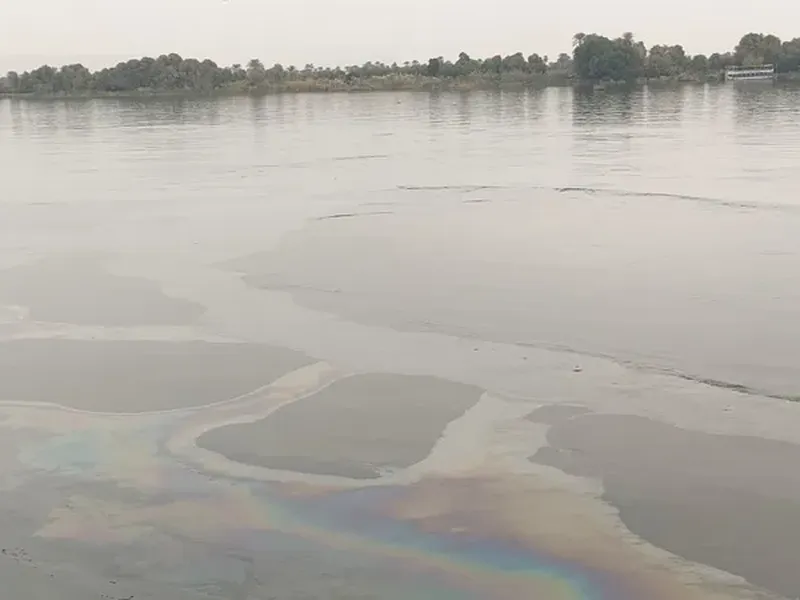 ظهور بقعة زيت كبيرة بمياه نهر نيل إسنا بالأقصر وسط مخاوف الأهالي