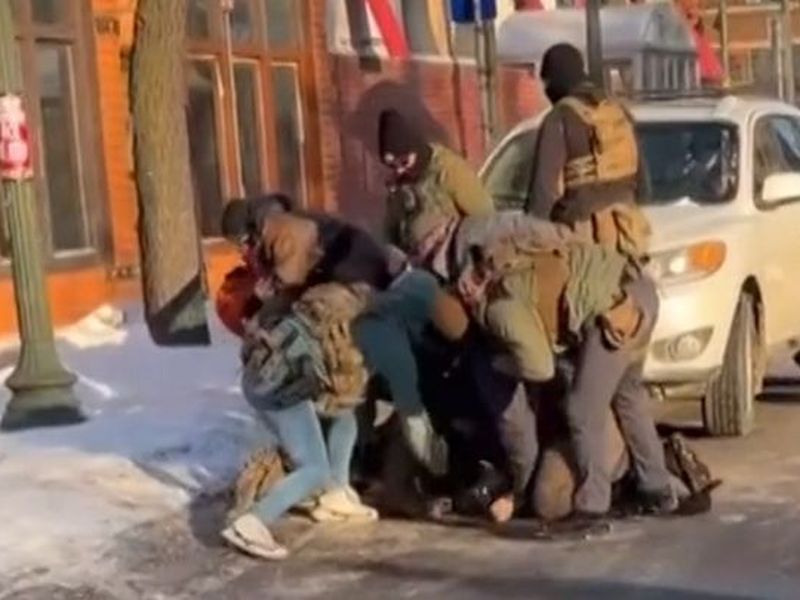 وفي المقطع، يظهر عدة أشخاص يعتقد أنهم عملاء فيدراليون، وهم يُثبّتون شخصا على الرصيف بينما يقوم ضابط واحد على الأقل بضربه بأداة، ثم يسمع صوت طلقة نارية ويتفرق العملاء ويسقط الشخص أرضا.