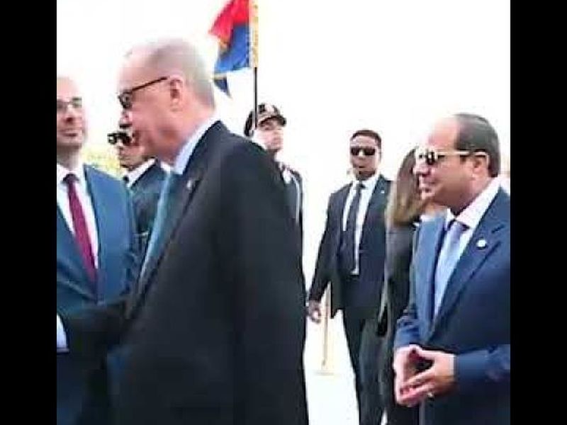 الرئيس السيسي وقرينته يستقبلان الرئيس التركي وحرمه لدى وصولهما مطار القاهرة