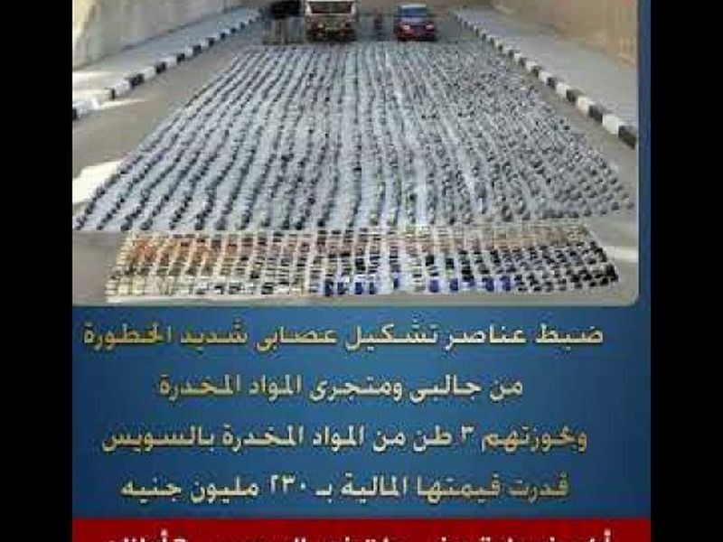 تفاصيل أكبر ضبطية مخــ ــدرات في السويس.. 3 أطنان مخــ ــدرات و230 مليون جنيه