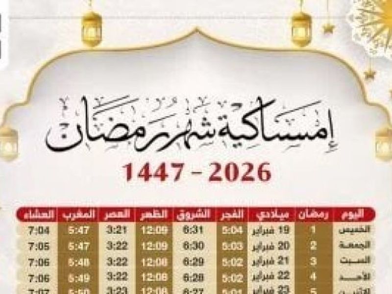 الخميس 26 فبراير الموافق 8 رمضان