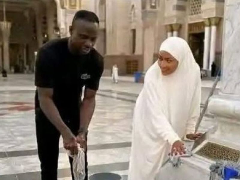 تداول رواد مواقع التواصل الاجتماعي صورة للنجم السنغالي ساديو ماني، لاعب نادي النصر، برفقة زوجته عائشة تامبا، أثناء مشاركتهما في تنظيف ساحات المسجد النبوي الشريف. صدى البلد : المصدر مشهد إنساني.. ساديو ماني وزوجته ينظفان ساحة المسجد النبوي