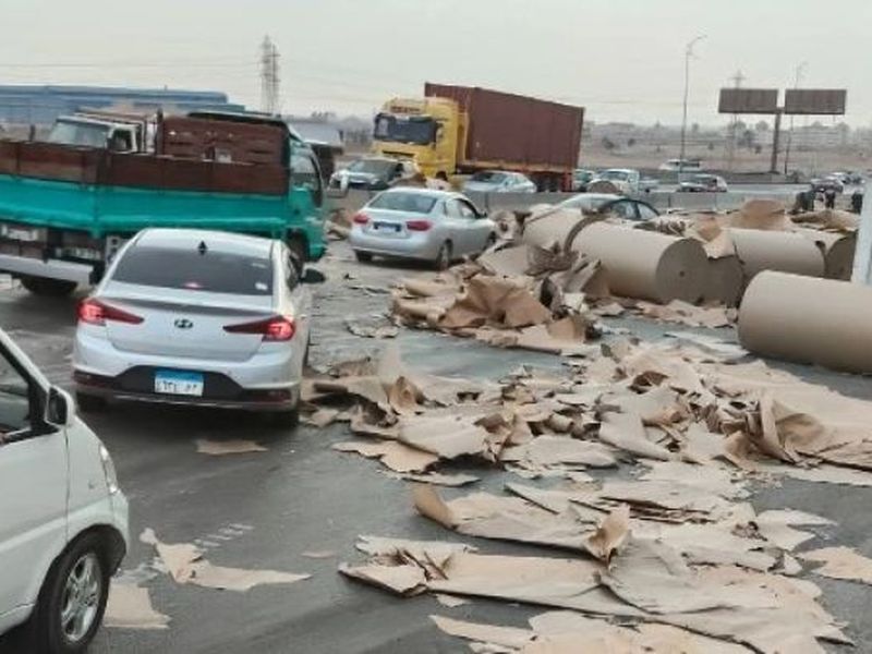 انقلاب نقل وتهشم ملاكي.. شلل مروري أعلى الأوسطي بسبب حادث مروع قبل الإفطار| صور