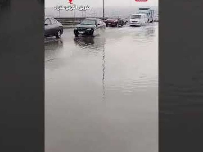 الأمطار الغزيرة تتسبب في ارتفاع منسوب المياه على طريق الاوتوستراد