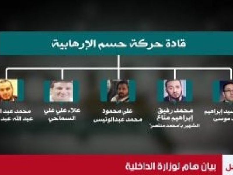 استكمالا لجهود ملاحقة عناصر حركة حسم الإرهابية التابعة لجماعة الإخوان الإرهابية، المتورطين في إعداد مخطط يستهدف الإضرار بمقدرات الدولة من خلال القيام بسلسلة من العمليات العدائية، والدفع بعضوي الحركة (أحمد محمد عبد الرزاق أحمد غنيم، إيهاب عبد اللطيف محمد عبد القادر) لتنفيذ عمليات تستهدف المنشآت الأمنية والاقتصادية بالبلاد.