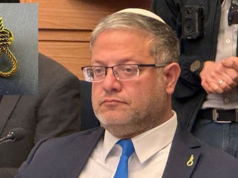 وقد برز هذا المشهد بشكل لافت خلال الجلسات التحضيرية للمداولات، حيث تزيّن نواب من اليمين المتطرف أبرزهم من حلفاء وزير الأمن الداخلي إيتمار بن غفير بهذا الدبوس الذي يرمز لطريقة الإعدام شنقا، وذلك في استعراض نية مبيت للتصويت لصالح القانون الذي يقضي بإعدام الأسرى الفلسطينيين.