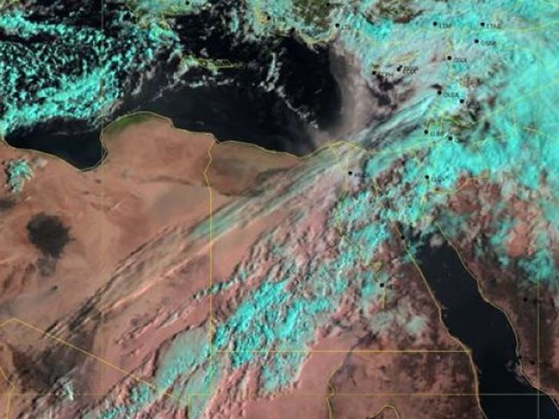 كشفت هيئة الأرصاد الجوية عن أنه تشير آخر صور الأقمار الصناعية ،اليوم الخميس إلى استمرار الرمال المثارة المنقولة على