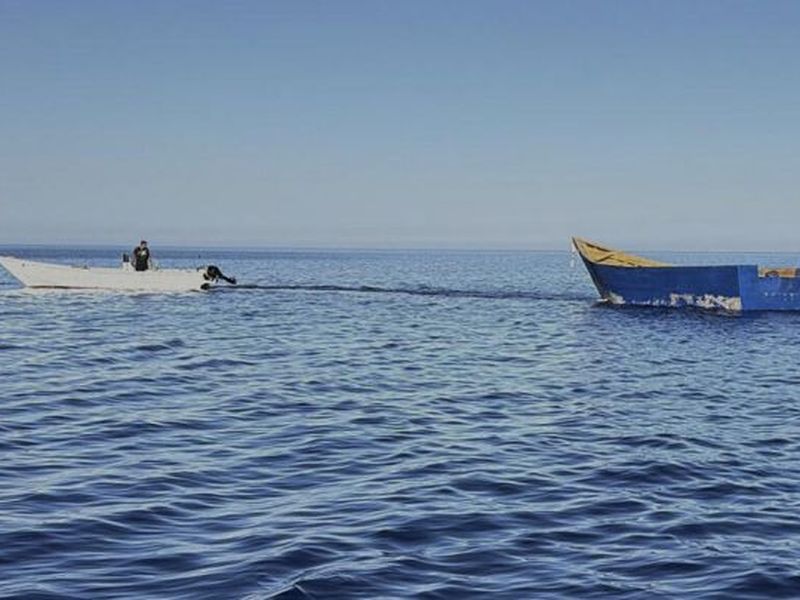وأظهر مقطع فيديو نشرته المنظمة على منصة إكس، ويبدو أن طائرة المراقبة "سي بيرد 2" قامت بتصويره، رجالا يتشبثون بهيكل القارب المنقلب بينما كان ينجرف في عرض البحر، ثم تقترب منه سفينة تجارية.