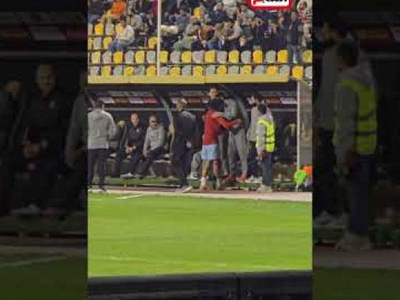 أصدقاء الأمس مروان عثمان لاعب الأهلى يتوجه لمصافحة الجهاز الفنى و لاعبى سيراميكا