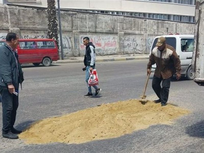 إصلاح هبوط أرضي بشارع كوبري ذو الفقار في غرب الإسكندرية وردم حفر بعدة مناطق