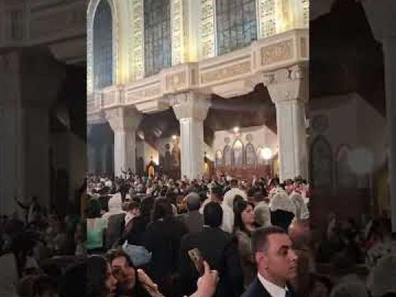 لحظة دق أجراس الكاتدرائية المرقسية بالعباسية وبدء قداس عيد القيامة المجيد