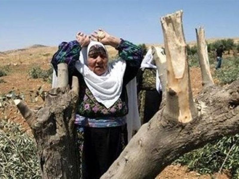 مستعمرون يقطعون عشرات أشجار الزيتون فى اللبن الشرقية الفلسطينية