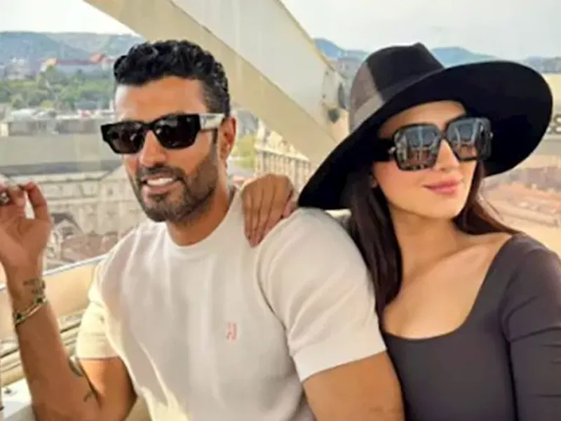 وظهر محمد سامي مع زوجته الفنانة مي عمر، خلال جولة بالتلفريك فوق المدينة، في أجواء رومانسية لافتة.